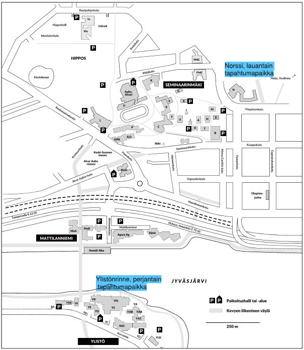 Perjantain tapahtumapaikkana on Jyväskylän yliopiston Ylistön kampus, os. Survontie 9.